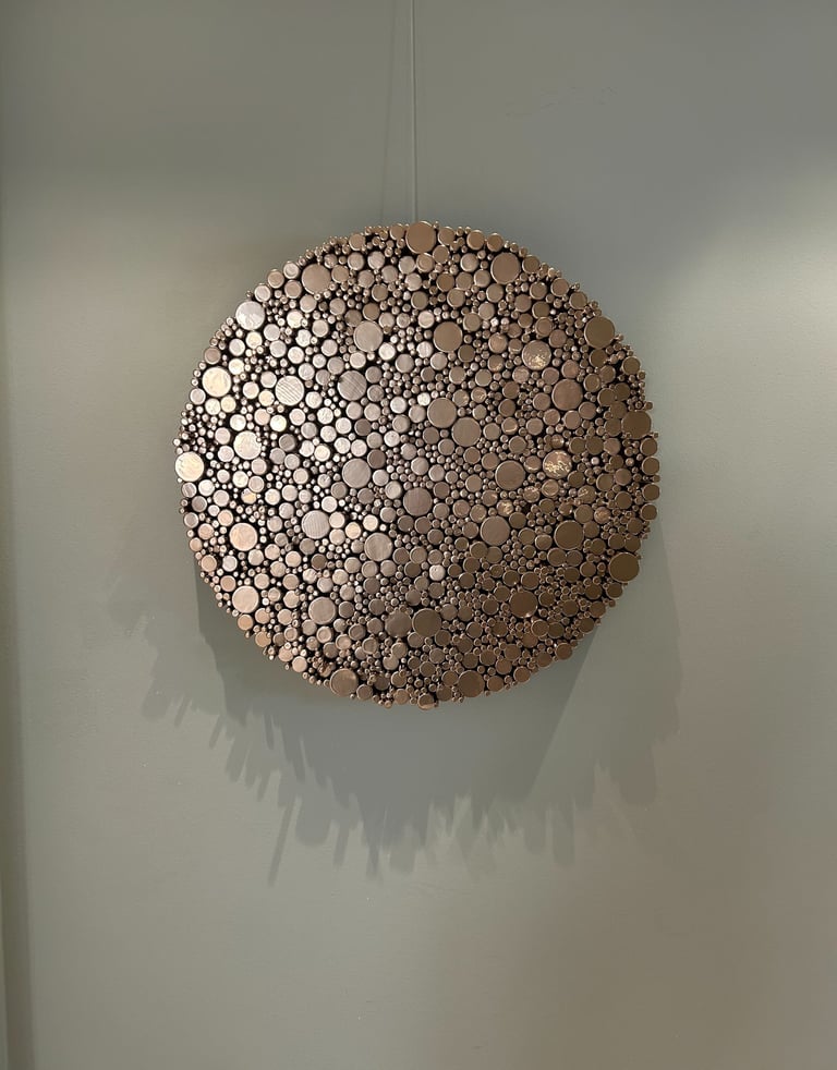 Het werk van Sander transformeert geometrie en organische vormen tot krachtige, gelaagde kunstobjecten. Door het gebruik van metaal, textuur en natuurlijke oxidatie ontstaat een unieke interactie tussen licht, diepte en materiaal.